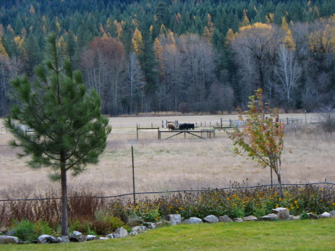 | Daddy was invited to play with some friends in Couer D'Alene and we didn't want him taking the slippery truck over the mountains. We also didn't want him taking our car, leaving us with the truck, so we went with him in the car. While Daddy was hanging out with his buddies, we stayed at Cedar Mountain Farm, a wonderful bed and breakfast on a real farm! |